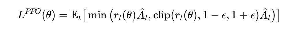 The clipping term ensures that the policy ratio rt(θ) doesn’t deviate too far from 1. This prevents the model from making overly large updates which ensures stable training.