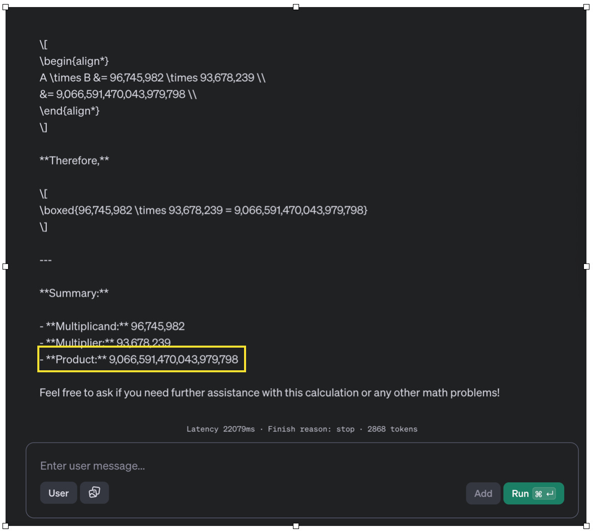 Let’s go back to the question: “Can you tell me how much 96745982 times 93678239 ?”