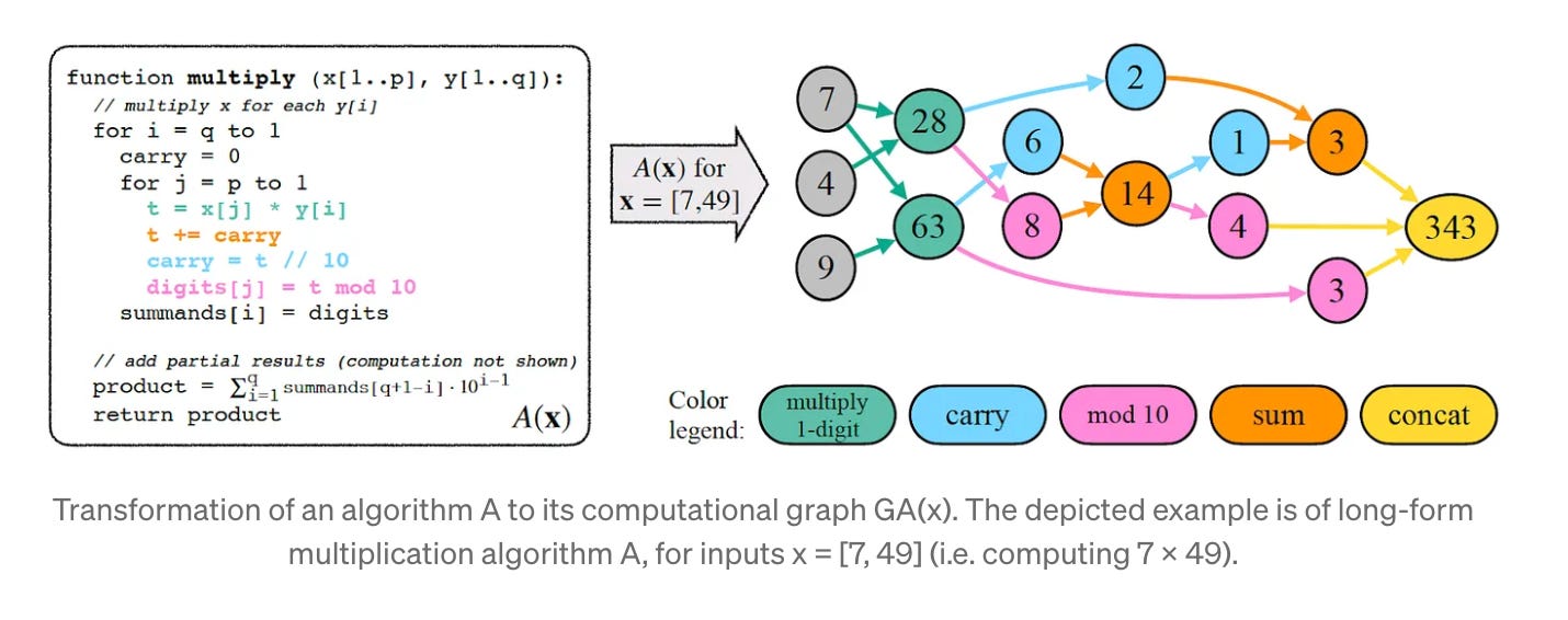 We were particularly curious about whether training these LLMs with a massive amount of (prompt, chain-of-thought, solution) in an SFT style would enable them to learn the underlying algorithm and achieve 100% accuracy, regardless of the task's complexity. Could they for example generalize from 5x5 multiplication training to solve 6x6 multiplication problems at inference time?